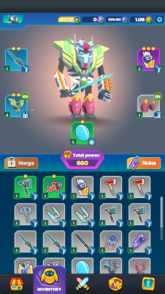 6、在装备界面,我们还可以自由的搭配不同武器来强化自己的机器人。