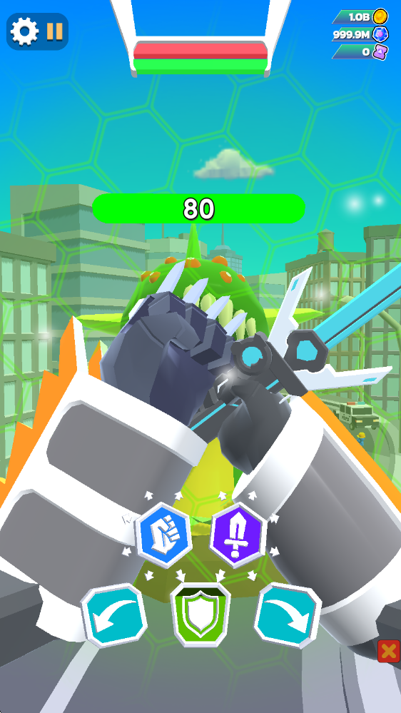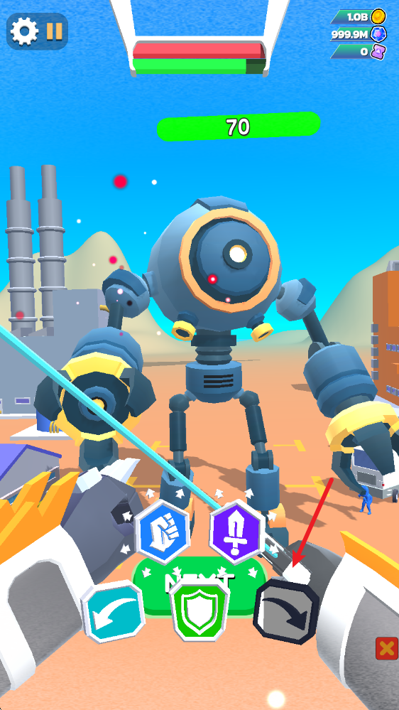 2、战斗开始后,我们将会和其他机器人进行1v1的对战,对手发动攻击的时候,点击相反方向即可闪避。