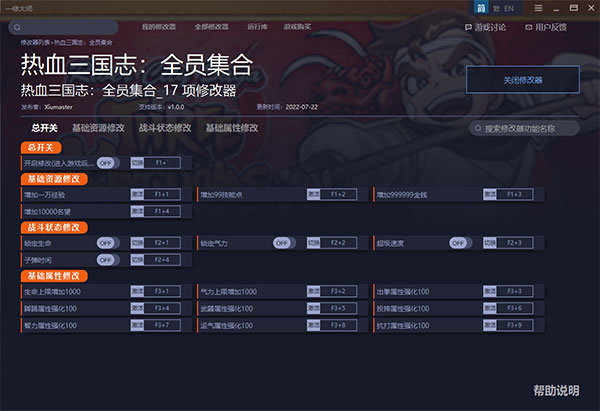 热血三国志全员集合十七项修改器快速刷钱升级技巧