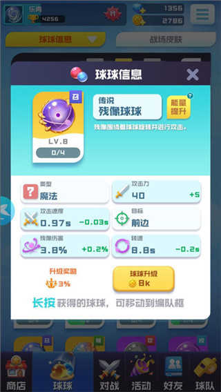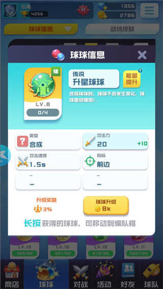 超过40种球球可供选择,重复球还可升级,合理搭配现有球球组合,击败对手不是梦。