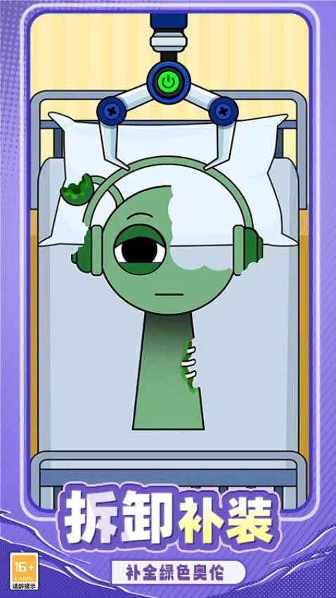 将关卡的道具拖动到角色身体上就可以开始帮助角色修复身体,可以更换新的零件