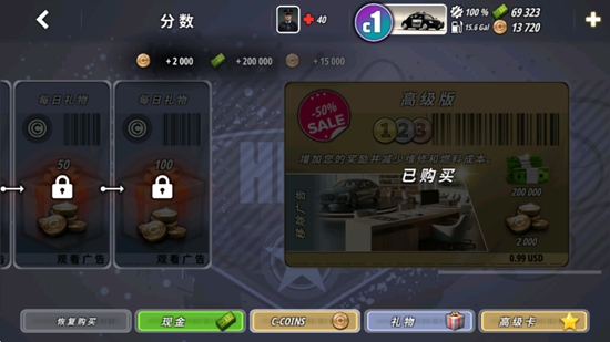 1.无限资源与快捷解锁:内购破解后可立即获得原本需长期任务才能解锁的特种拦截车、高速巡逻直升机等高级载具,以及强化防弹轮胎、高速引擎等顶级装备,大幅降低成长门槛;