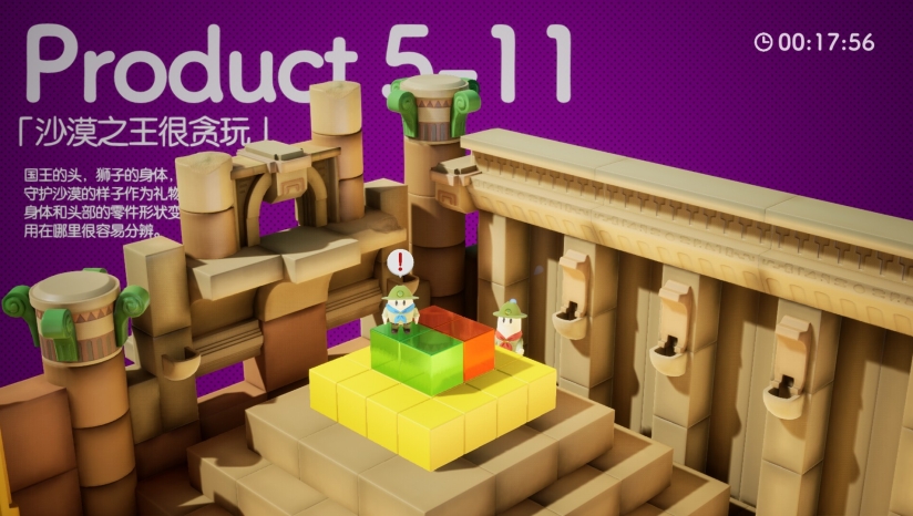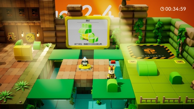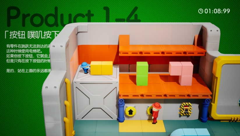 本作最大特色是其创新的“合作拼图”机制。组装过程类似电子乐高,兼具创意与挑战,例如在森林工厂制作木马,或在水下车间拼装潜水艇,内容多样且无重复感。游戏设计了对新手友好的渐进式难度曲线,前期通过基础操作教学引导上手,后期则强调高强度协作,如一方切割零件、另一方快速拼接,失误可能导致重来,进一步凸显团队配合的重要性。此外,工厂中设置了丰富的互动机关(如加工机器、高空脚手架),需灵活运用场景元素解题,兼具拼图的策略性与动作游戏的操作感。