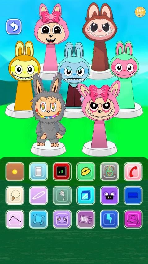 3、如图所示,游戏界面显示很多节奏角色,从底部将相关的节奏拖动到上方的人物就立即播放音乐