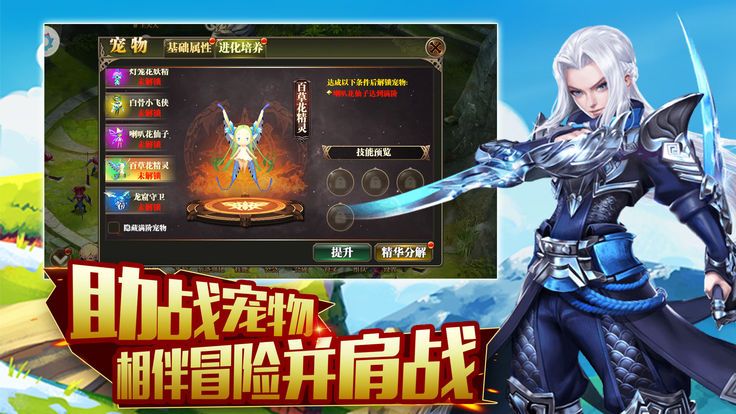 宠物系统创新,宠物可以进化、学习技能,提升战力。