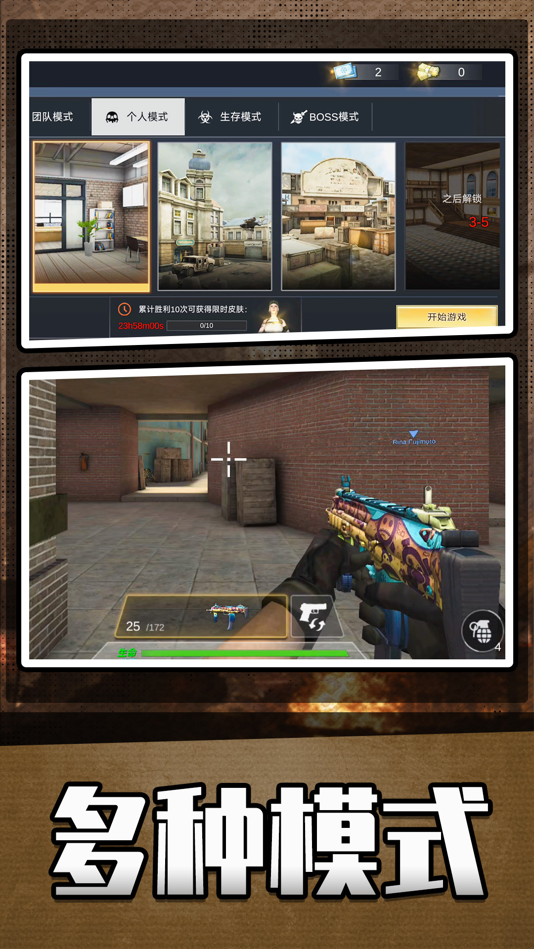 《英雄无限火力》是一款超好玩的fps射击游戏,在游戏中你将扮演超级特种兵征战沙场,超多武器地图等你来解锁