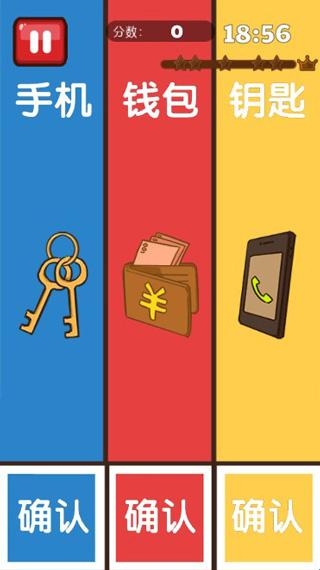 游戏玩法:点击确认所显示的钱包、手机、钥匙与所对应的文字是一致的