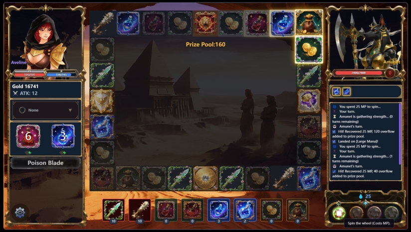 不仅仅是运气:利用角色的主动技能(如“毒刃”、“复仇反击”)和被动天赋来控制战局。甚至在关键时刻,你可以消耗生命值向神灯许愿,强制改写轮盘的结果。
