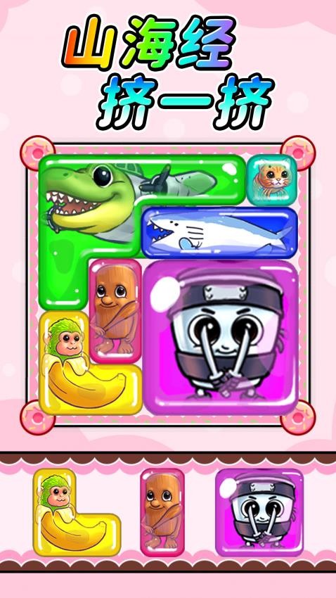 3、挤一挤玩法很简单,将底部的角色拖动到中间区域的格子里面就可以完成挑战