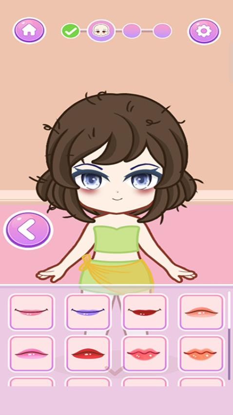 3、自定义化妆风格,为卡通娃娃选择不同的妆容和唇色,打造时尚妆容;