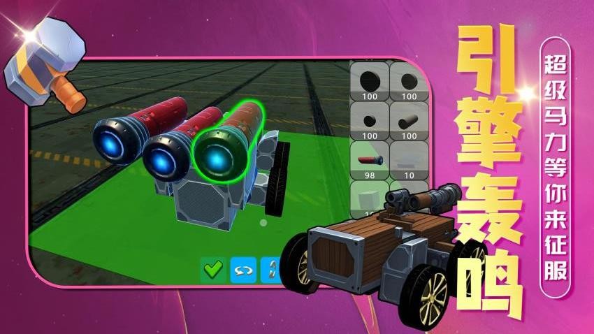2、丰富的零件类型,可以添加车轮,可以添加发动机,可以添加各种螺丝