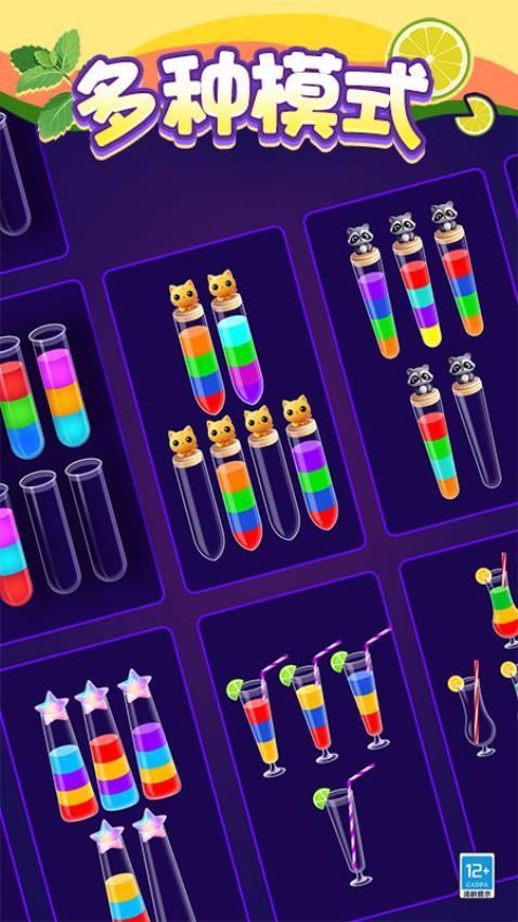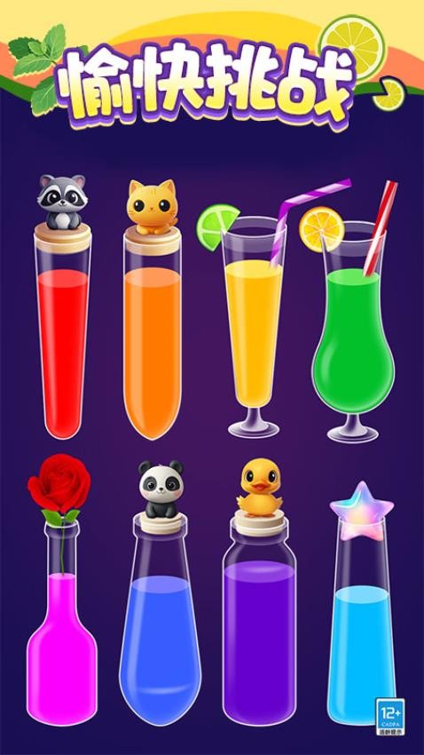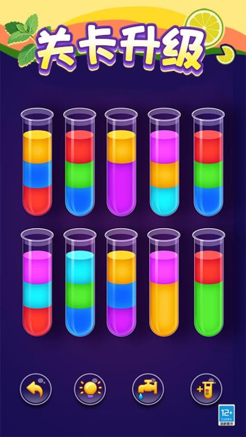 设置在一个色彩斑斓的液体世界,玩家需要利用简单的拖放操作进行液体排序,将相同颜色的液体完美排序就能顺利完成挑战。