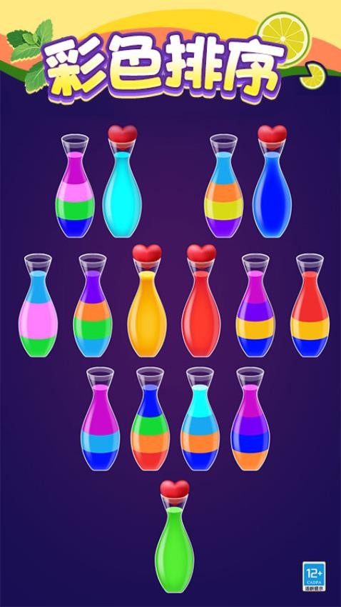 1、彩色排序机制观察液体色彩,相同颜色的液体组合即可顺利完成关卡挑战与任务。