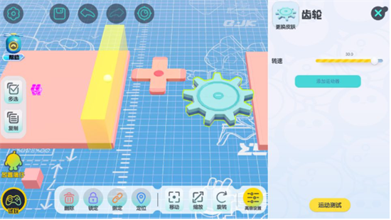详情界面中可以调整该组件的运动及其他属性参数,不同的机关会有不同的参数可以调整(比如齿轮可以调整转速)