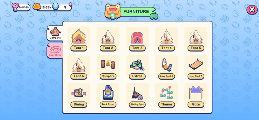 你将在一个美丽的池塘边开始这段旅程。首先,你需要为豪华露营地勾画出一个清晰的蓝图。通过建造各式各样舒适的帐篷,创建独特的休闲区域,并安排精致的户外设施,为未来的游客提供一个令人放松的环境。每个帐篷都可以进行个性化定制,增添一些特色装饰,让他们更具吸引力。