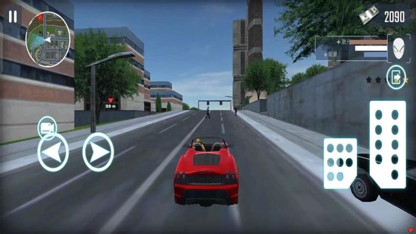 1、在这里你可驾驶红色的跑车来追踪坏人,掌控刹车和方向盘即可行驶。