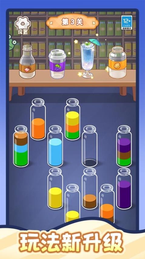 就爱排序消是一款简约清新画风的休闲益智类游戏。游戏主要任务便是将不同颜色的液体加以分类,查看瓶子中液体的颜色分布情况进行操作,所有相同颜色的水组合在一起就能完成关卡挑战,主要考验规划能力与观察力,全程都要专注查看所有水杯试管的情况,根据当前分布状况实时调整倾倒顺序与操作,这样才有机会完成所有关卡领取丰厚的资源奖励。新手无需学习成本,指尖轻松就能开启排序挑战,调整顺序和节奏就能过关,注意缩减操作步骤就能提高评价等级与奖励,还能反复游玩相同关卡发掘特殊诀窍。