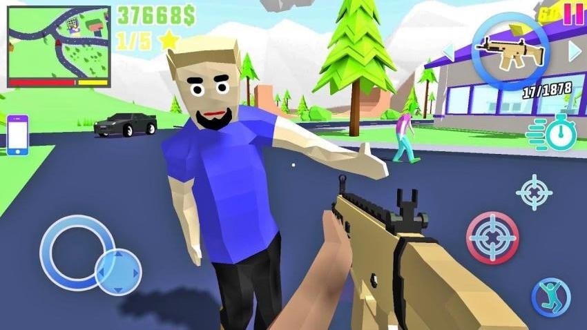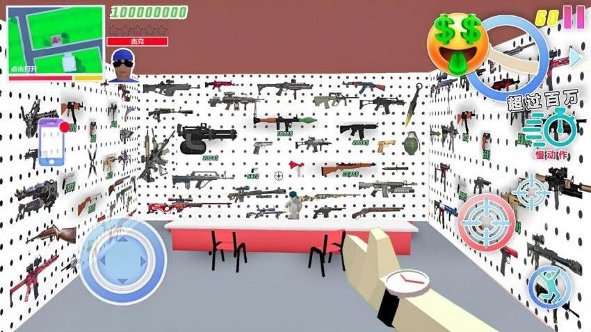 开放大世界手游是一款功能简单的自由冒险游戏,玩家扮演一个角色,开局就可以在房间出生,可以离开房间前往户外冒险,支持攻击路人,如果遇到路人,可以直接切换近战武器,切换远程武器开始攻击,支持车辆驾驶功能,靠近一个车辆就可以直接驾驶,可以驾驶自己的车辆撞击敌人,也可以撞击各种花丛,撞击树木,遇到的全部物品都可以开车撞击,让玩家可以在游戏直接自由探索,非常有趣;开放大世界手游提供很多武器系统,您可以在游戏中购买新的武器,可以获取步枪,可以获取手雷,使用不同的武器攻击其他人。