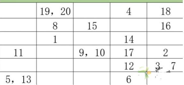 2、第1-5层。24、 9、27、23、9、第6-10层。2、13、 29、 23、 8、 第11-15层,29、 21、 5、 13、 3、 第16-19层,24、23、15、8.