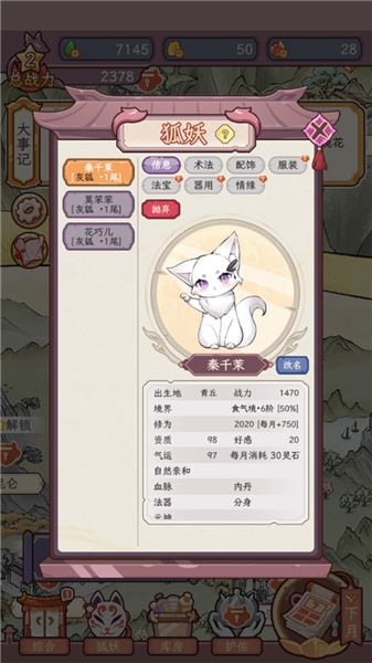 3、收留后,点击狐妖即可查看当前拥有的小狐狸;