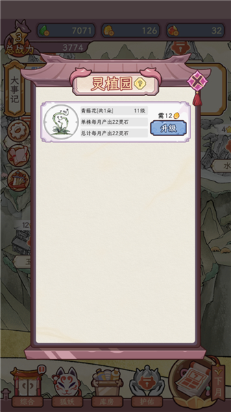 8、同时,游戏中还有各种灵植园内玩法,每分钟可以生产资源,提升等级可以获得更多资源;
