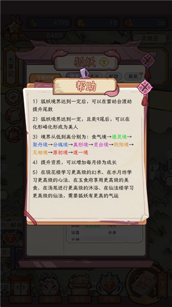 在这片世外桃源中,建设更多修炼的场景,助力狐妖修炼升尾,早日升级成美人。