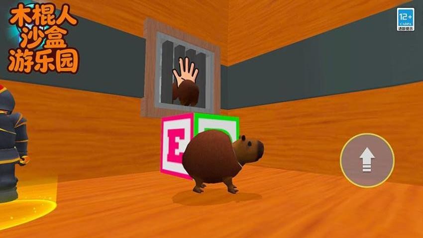 2、点击界面上的箭头,以便能够让卡皮巴拉这个怪物跳起来,触碰到上方的手即可。
