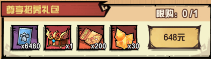 3.月礼包:也是648一个自选神器,虽然写的是招募礼包,但氪这个基本也认为是氪神器送招募和水晶,性价比比弹窗礼包更搞一些,月限购1次。
