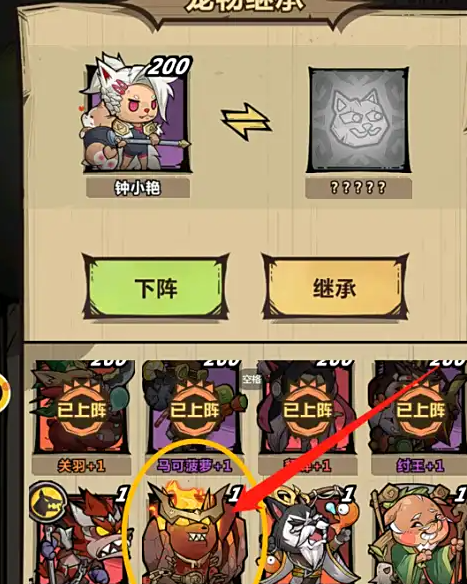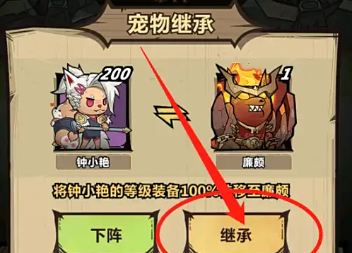 4、点击“继承”按钮即可无损继承更换上阵宠物。