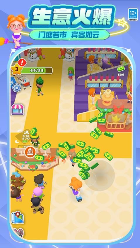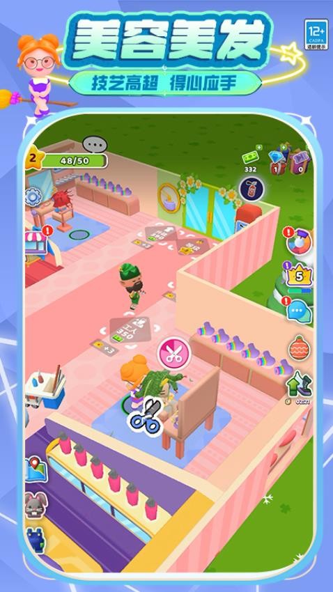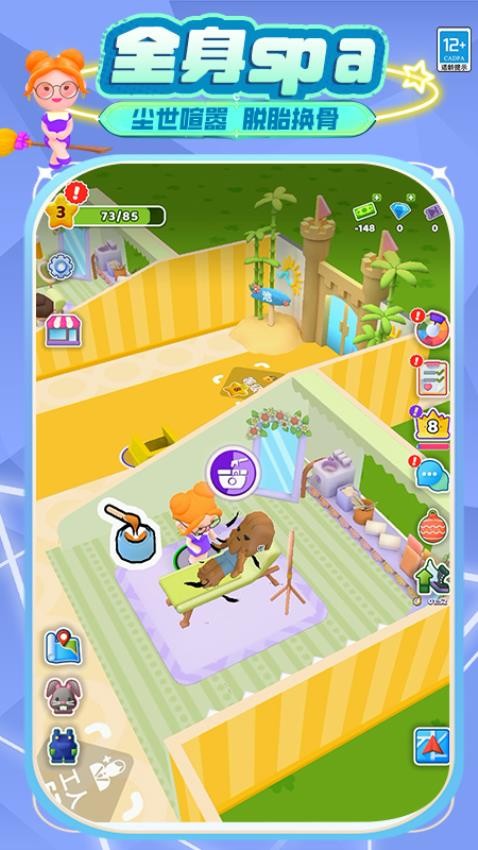 玩家经营一家美容院,招兵买马,升级工人如清洁工、储料器、工人等提升效率。扩展门店,升级设备,为精灵顾客提供全身spa、美容美发等服务。在生意火爆时,应对门庭若市的场景,合理安排服务,满足顾客需求,打造一家受欢迎的精灵美容院。