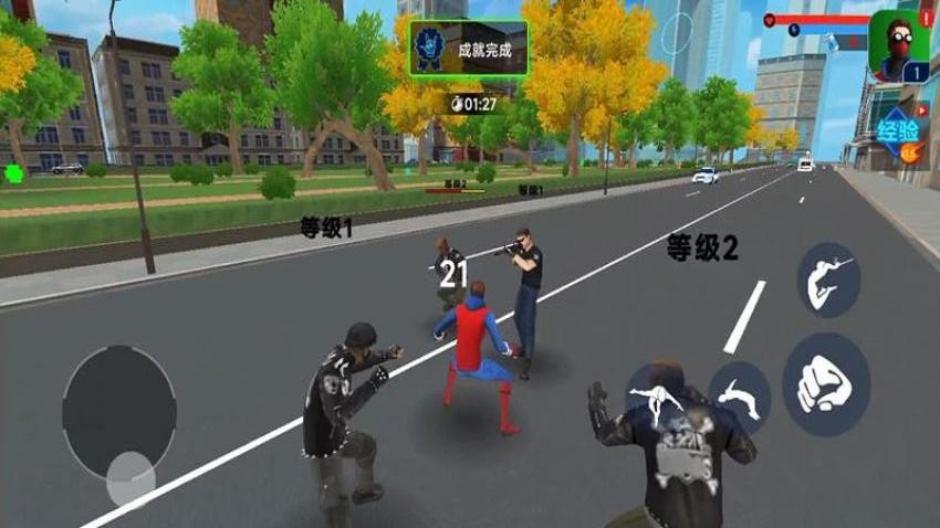 高楼自由跳跃穿梭,利用蛛丝可以穿越所有楼房的阻拦抵达目标地点;