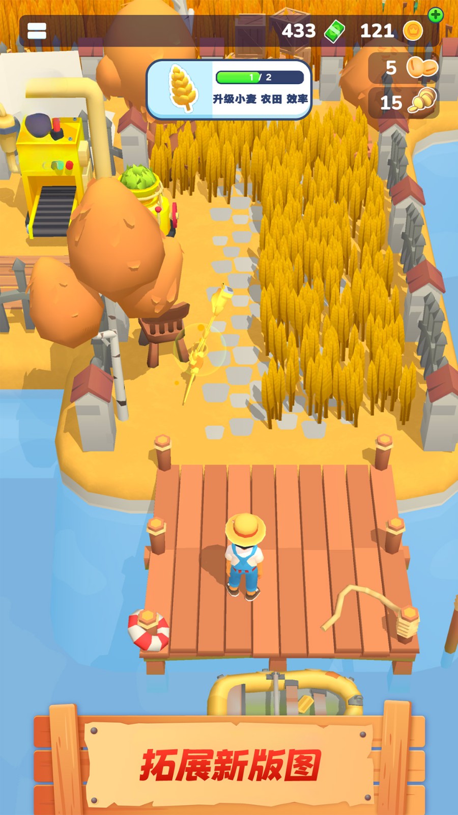 2、农场旁边的树木可直接砍伐,这样即可拓宽农场,利用它们来栽种更多的农作物,提升产量等级。