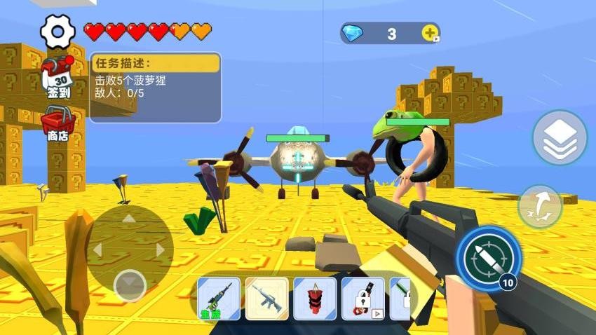 4、完成生存任务解锁新地图,探索未知空岛寻找稀有矿物与宝箱,应对敌对生物,逐步壮大空岛规模。