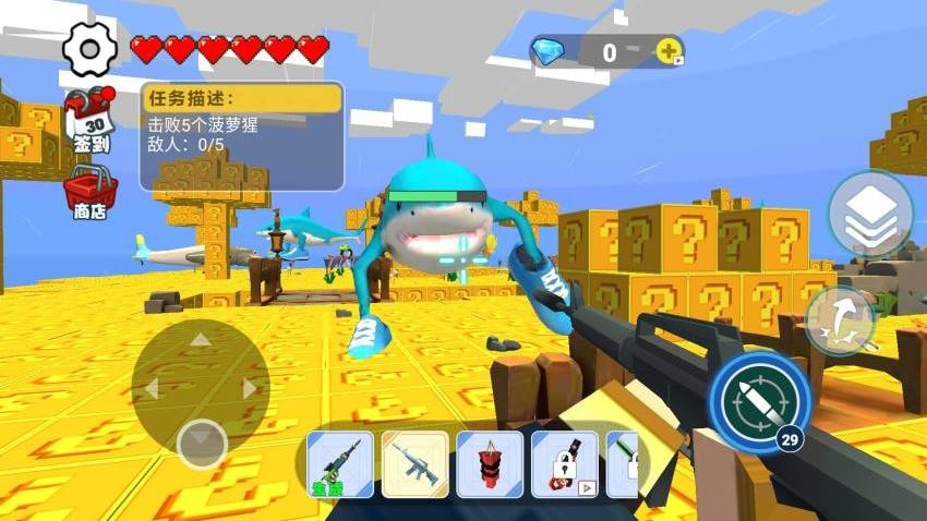 5、多种方块资源随意点击,简单交互就能采集各式各样的资源完成建造,这会轻松面临不同方面的探索考验。