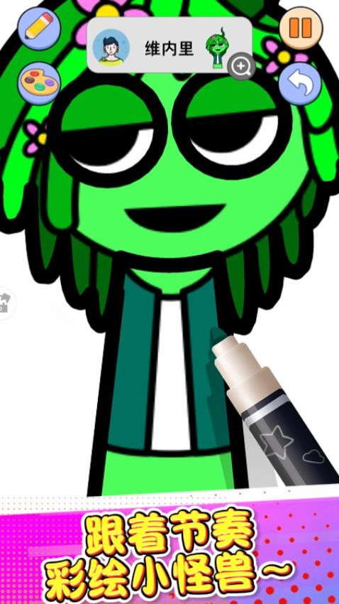 界面上可以随时的画画,画完之后还能涂上喜欢的颜色,简单的颜色填充就能带来全新视觉体验,还能形成不同的关卡评价。