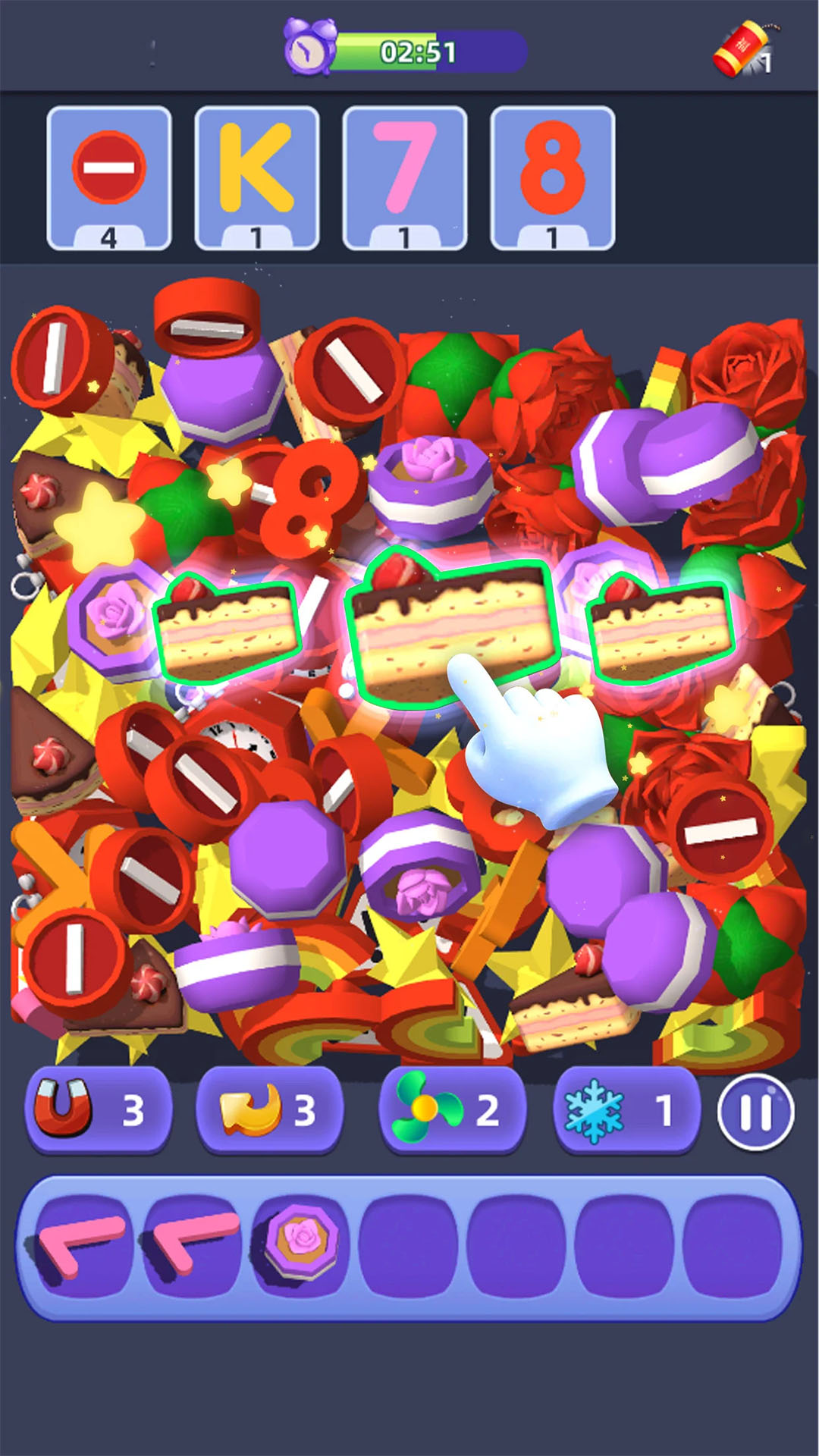 这是一款超有趣的3D配对消除游戏,你需要从一堆物品中找出相同的进行配对消除,可爱的动物、甜美的食物、炫酷的玩具等闪亮物品都会出现,游戏会自动保存进度,随时可以暂停或继续,考验眼力和记忆速度的同时带来简单又上头的体验。