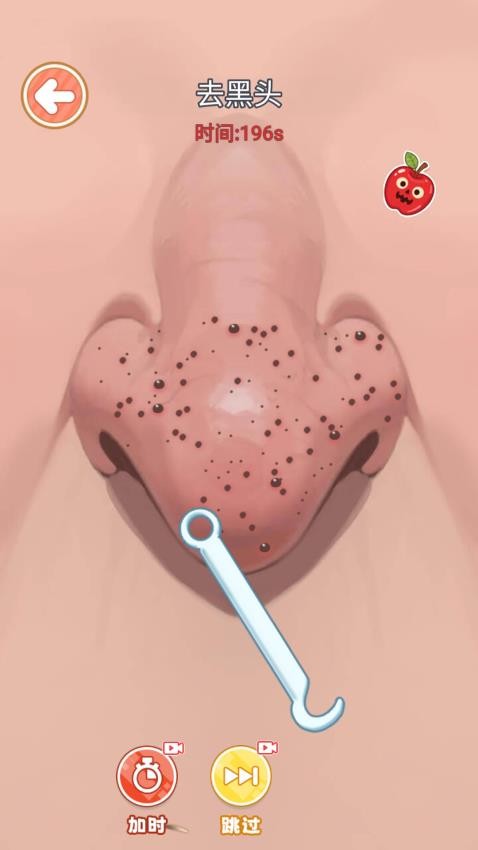是一款趣味美妆类游戏,主题为 “去黑头”。你将使用专业工具,在限时挑战中清理不同角色鼻子上的黑头,体验模拟护肤的解压乐趣。游戏设置加时、跳过功能助力,快来开启这场专注黑头清理的美妆冒险,让每个鼻子都恢复洁净吧~