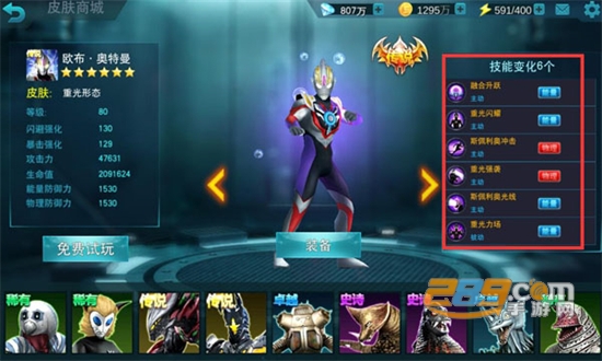 4、所有奥特曼怪物均可选择,每个英雄都有专属皮肤!快来组建属于你自己的奥特曼队伍吧。