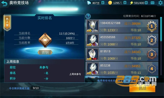 这是一位集免疫、群攻、眩晕、大输出为一体的奥特曼,唯一的缺点是技能冷却较慢,竞技场上倒也表现不俗,在这里作为史诗角色中前三的输出排在第三。