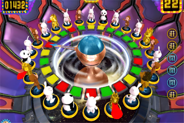 每个机子共12门(4种动物3色组合成12门),同时具有玩法技巧。每局可以设置25-30秒的时间,时间内玩家可以将森林舞会做成扇形。 在按狮子、熊猫、猴子或兔子的同时,必须选择红、黄、绿三种颜色。每个动物都有不同的代表,狮子的最高,兔子的最低。 时间到了之后(不能再继续了)。 液晶3D画面的车轮和指针开始旋转,停止后指针所指的颜色和动物(必须同时满足)是预选动物,例如指针是绿色的狮子,玩家在12门的中按入绿色的狮子时,玩家如果选的这个选项,那就是选对了。