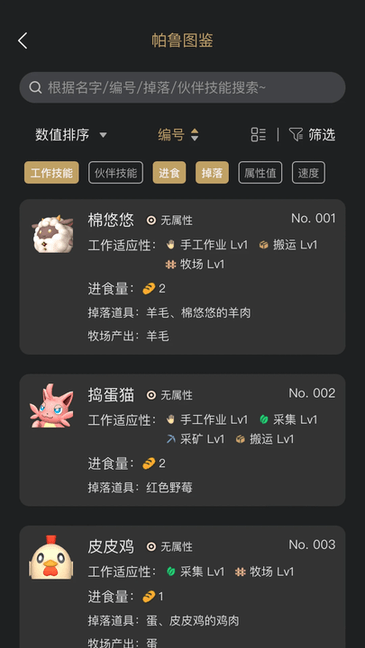 软件内提供的配种数据支持多代查询,帮助玩家培育出理想的帕鲁。详尽的图鉴查询功能,使得玩家能够按属性、技能等进行筛选和排序,快速找到所需的信息。互动地图功能标示了游戏内重要地点,让玩家在探索的过程中更加高效。软件还整合了大量物品、设施和手记数据,帮助玩家成为帕鲁世界的探索达人。