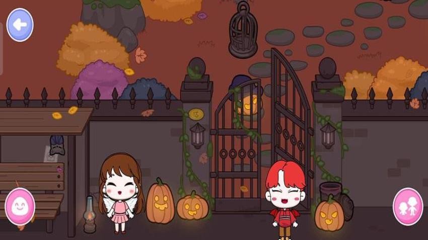 1、来到这个与万圣节有关的场景中,你可以让角色停在门口,等待解锁其他元素。