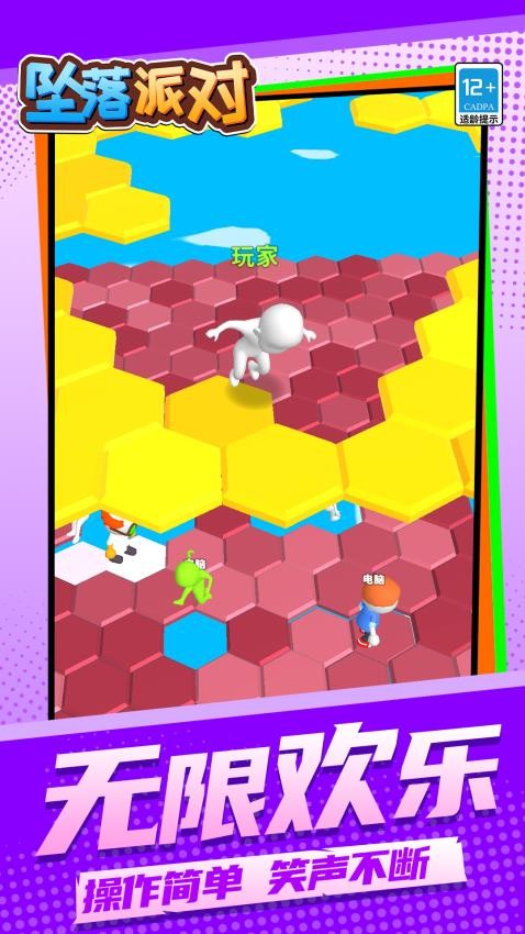 《坠落派对》是一款踩格子的解压休闲小游戏。多彩的格子平台正在空中悬浮,但下一步哪个会稳固?哪个会坠落?观察颜色、图案等细微线索,做出你的判断!一步走错,全场爆笑!