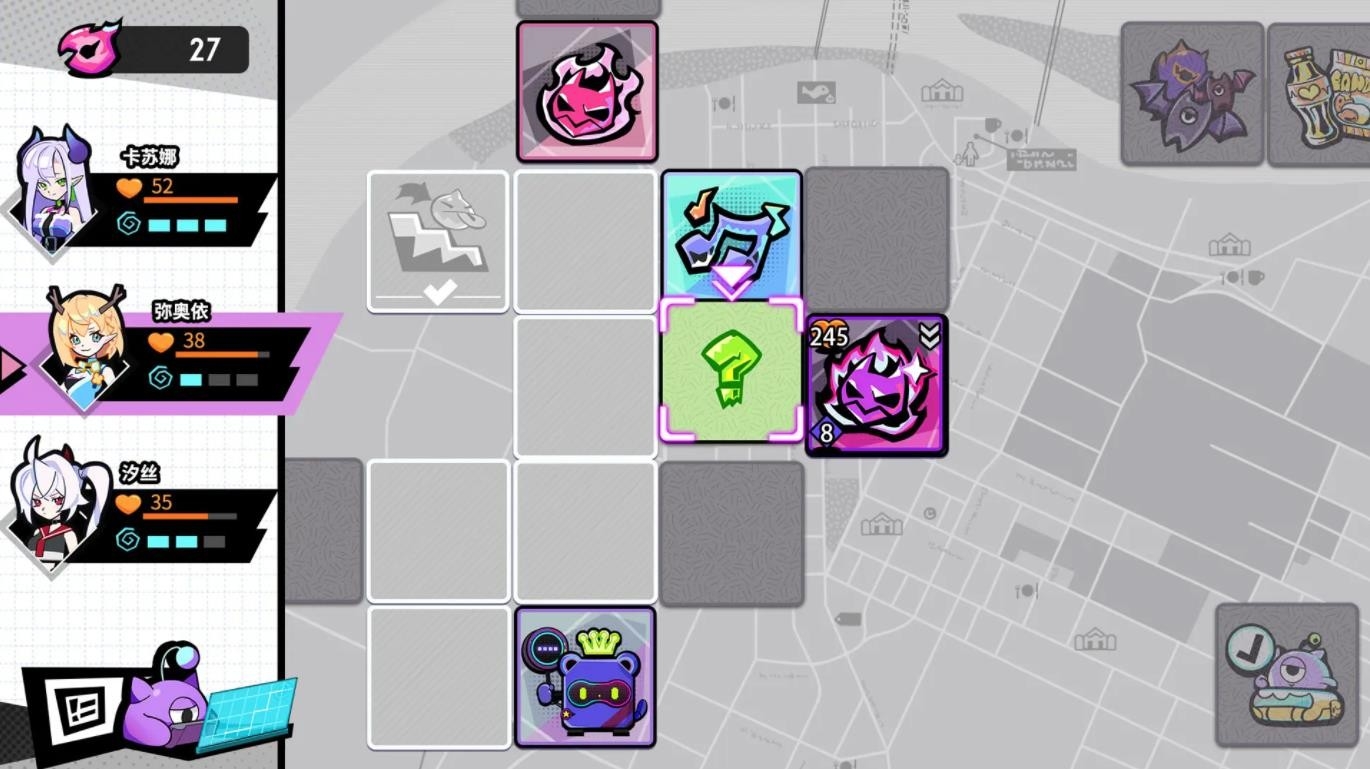 3、击败对手后会进入地图,玩家可以点击地图上的方块来前进,不同的地块上有不一样的事件发生。
