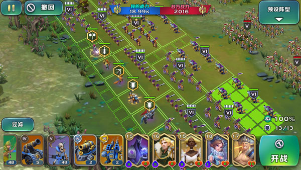 ④兵种克制:弓兵克枪兵、枪兵克骑兵、骑兵克步兵、步兵克弓兵,同时,部分兵种单体输出高,但部队个体数量少,或者是部队只有一个单位,例如坦克、蜘蛛,这些攻击都带AOE(群体伤害),这时要注意另一种克制关系:人海克制单体输出,单体输出克制AOE,AOE克制人海,战斗时前排容易死,多用低级兵更实惠,医院治疗的快,能让部队快速整装完毕;