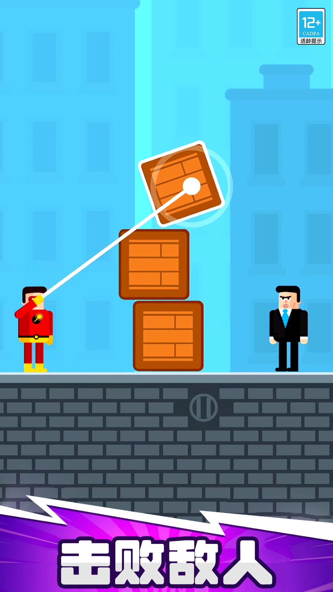 关卡之中你将会来面临越来越强的冒险,来使用你的绳索将你的对手来击败。