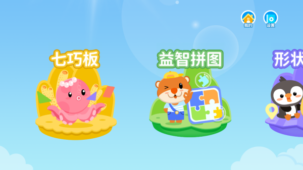 1,多样化益智拼图:涵盖七巧板、形状、益智、旋转拼图等多种玩法,结合公文式教育的逐步挑战模式。