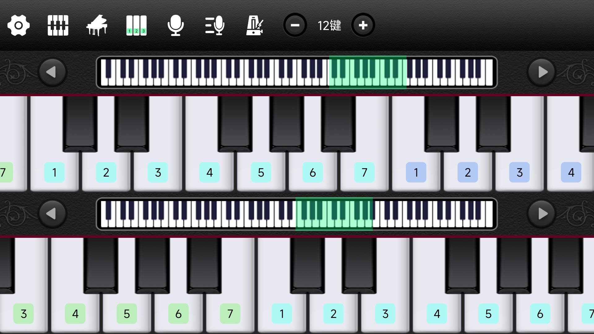 -可自行调节钢琴块的宽度:点击钢琴键盘左右两边的+-号可随时调节钢琴块的宽度。