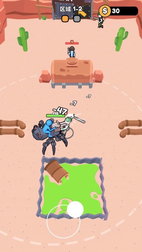 2、来到区域1-2这个环节中,驾驶蜘蛛战车逐步寻找更多敌人,并尽快击杀他们;