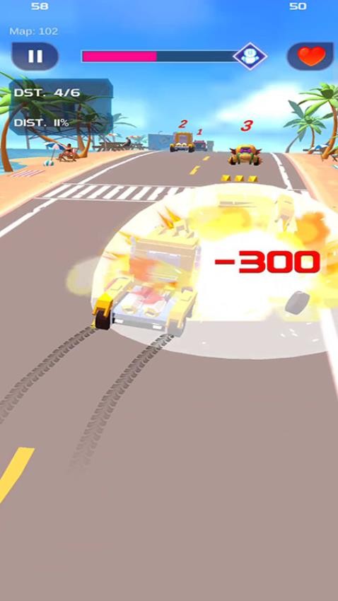 2、在道路上你可注意观察不同的阻碍物,需要尽快避开它们获得成功。